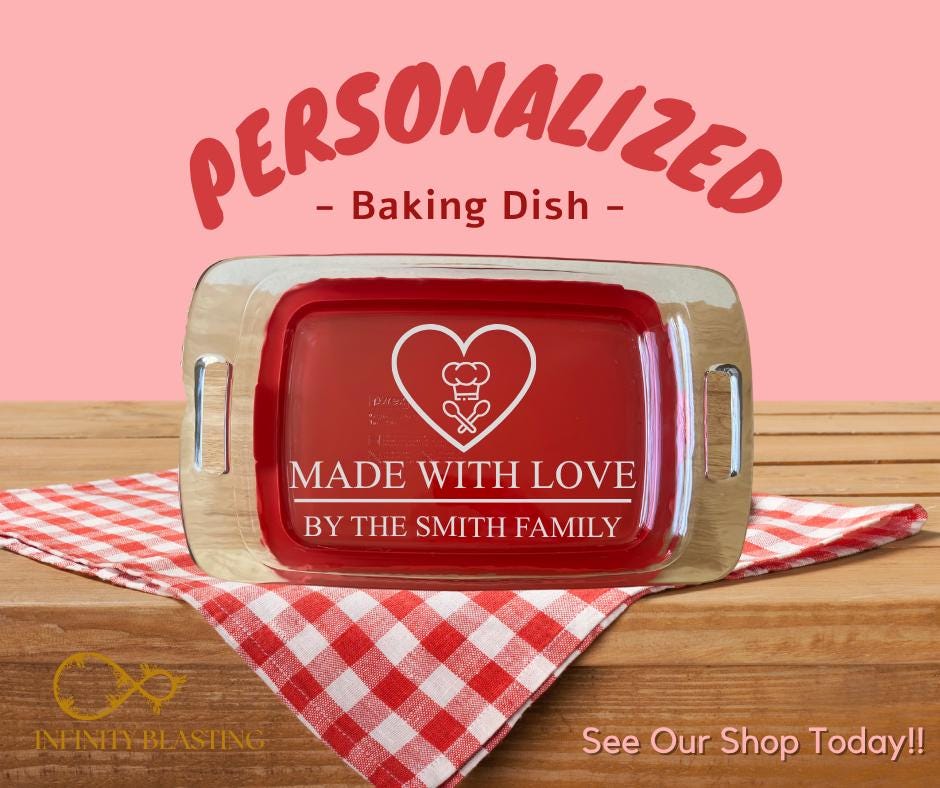 Elevate your kitchen essentials with our stunning Etched Personalized Pyrex Casserole Dish! Crafted with quality and care, this dish is more than just cookware—it's a cherished keepsake that adds a personalized touch to your culinary creations.